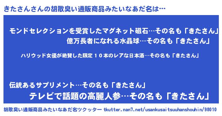 | 意味不明あだ名 | 『住所不定無職きたさん(53歳)』 |
