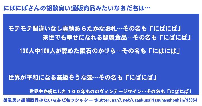 | ヒーロー風カッコイイあだ名 | 『正義の使者にぱにぱ』『仮面ニパダー』 |