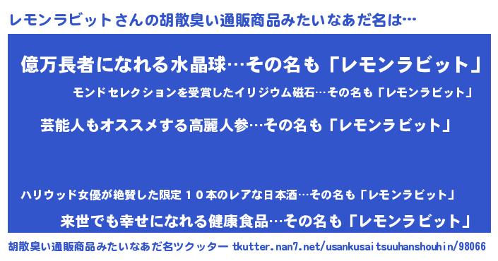 | 意味不明あだ名 | 『自称レモンラビット』 |
