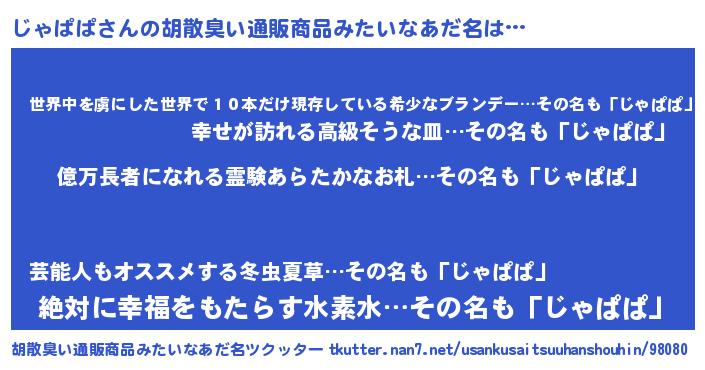 | ヘコむあだ名 | 『じゃっふぃ~』『じゃぱぱ(遠い目)』 |