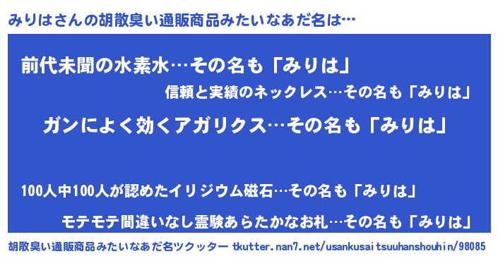 | 意味不明あだ名 | 『自称みりは』『永久保存みりは』 |