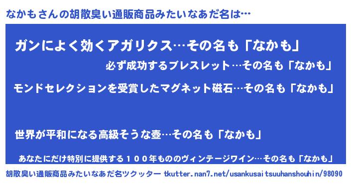 | 意味不明あだ名 | 『眠気覚ましガムなかも味』『自称なかも』 |