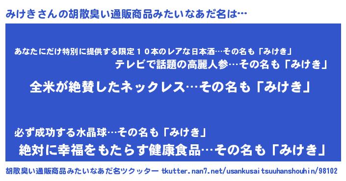 | 意味不明あだ名 | 『とにかく怪しいみけき』『自称みけき』 |