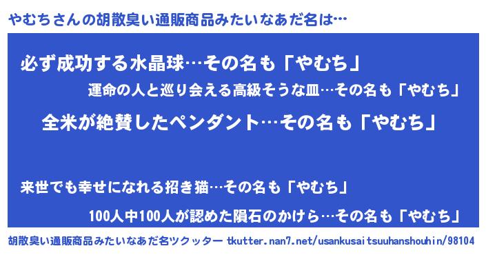 | ヘコむあだ名 | 『やむぷりん』『やむふぇ~』 |