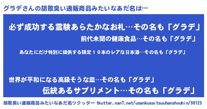 | ヘコむあだ名 | 『グラにゅー』『グラぷりん』 |
