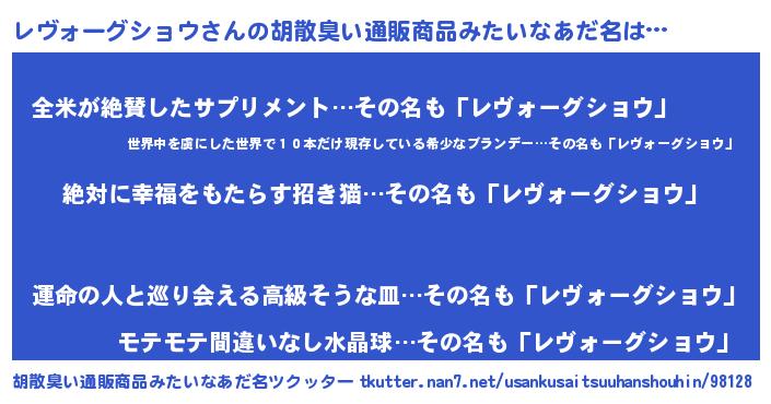 | 意味不明あだ名 | 『永久保存レヴォーグショウ』 |