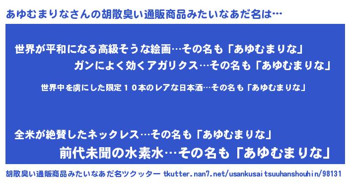 | 意味不明あだ名 | 『住所不定無職あゆむまりな(50歳)』 |