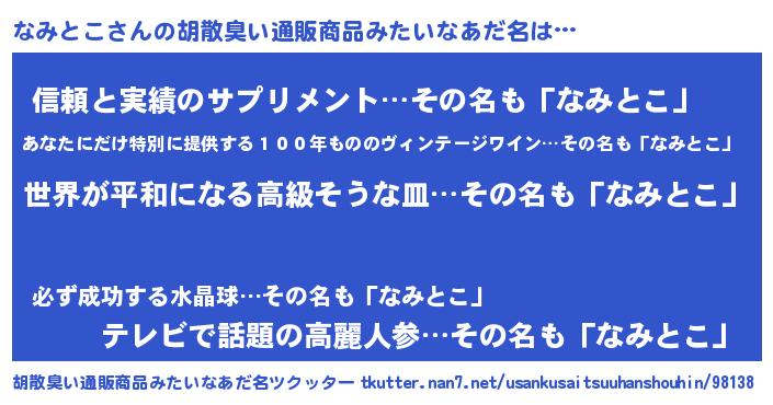 | ヘコむあだ名 | 『なまこ酢』『なみ太郎』 |