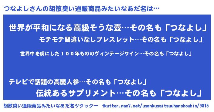 | ヘコむあだ名 | 『豆乳』『つなぷりん』『つなもー』 |