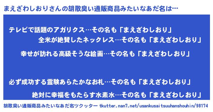 | 意味不明あだ名 | 『まえざわしおりフォーエバー』 |