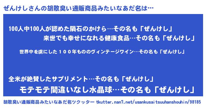 | 意味不明あだ名 | 『住所不定無職ぜんけし(13歳)』 |