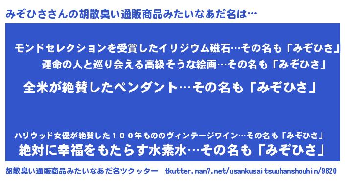 | 意味不明あだ名 | 『とにかく怪しいみぞひさ』 |