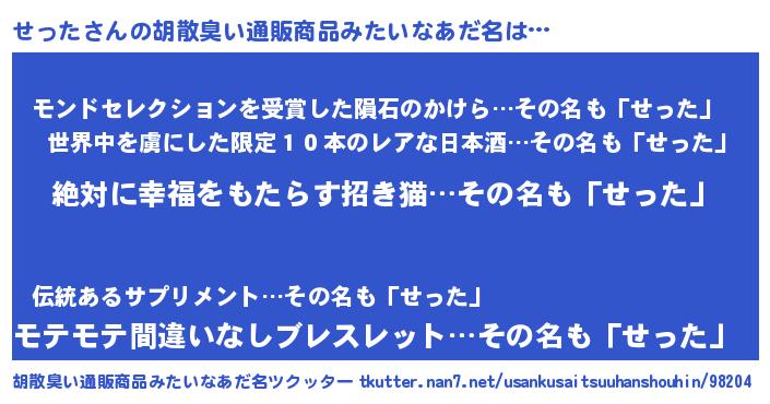 | ヘコむあだ名 | 『せった(笑)』『せっっふぃ~』 |