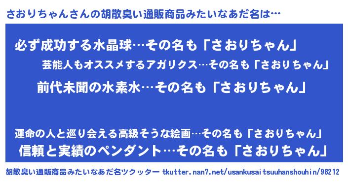 | 意味不明あだ名 | 『永久保存さおりちゃん』 |