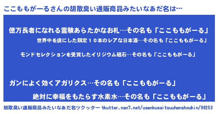 | 伝説のあだ名 | 『救世主となる占い師ここももがーる』 |