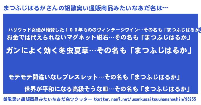 | 意味不明あだ名 | 『自称まつふじはるか』 |