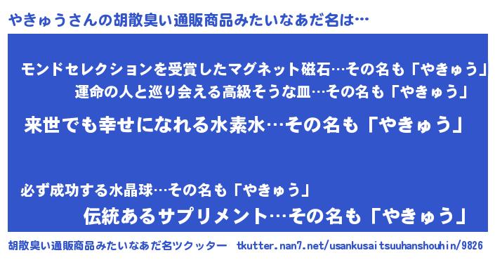 | 意味不明あだ名 | 『永久保存やきゅう』 |