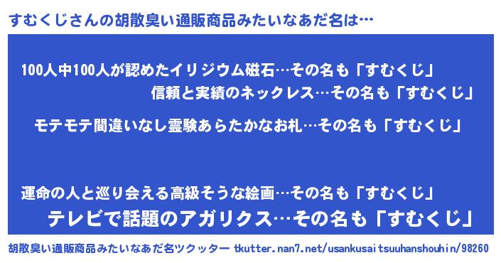 | 男性向けラノベタイトル風あだ名 | 『すむくじの憂鬱』『緋弾のスムクジ』 |