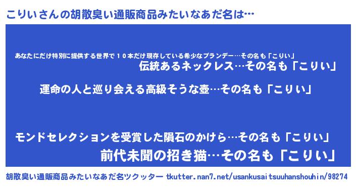 | 恥ずかしいあだ名 | 『こりっちょ』『こりちん』 |