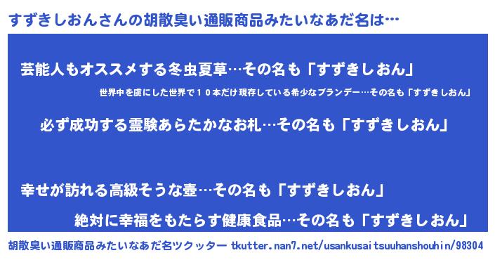 | 男性向けラノベタイトル風あだ名 | 『すずきしおんの憂鬱』 |