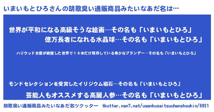 | 意味不明あだ名 | 『住所不定無職いまいもとひろ(93歳)』 |