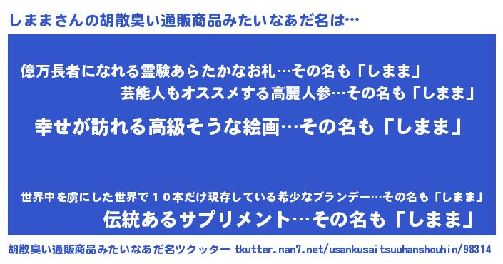 | 意味不明あだ名 | 『しままフォーエバー』『ペロリンしまま』 |