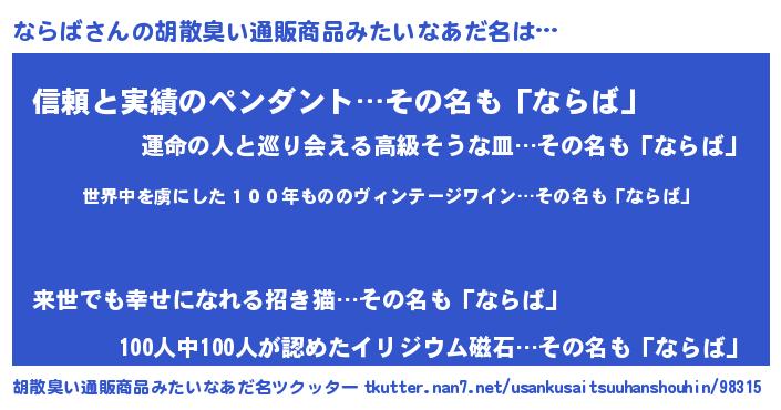| 意味不明あだ名 | 『住所不定無職ならば(1歳)』 |