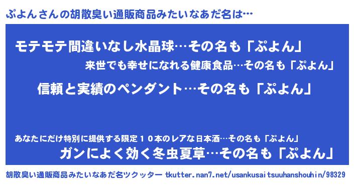 | 意味不明あだ名 | 『とにかく怪しいぷよん』『自称ぷよん』 |