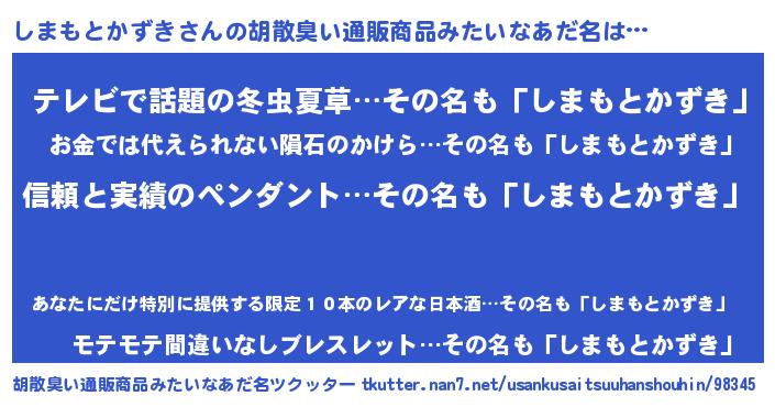 | 男性向けラノベタイトル風あだ名 | 『シマモトカズキスレイヤー』 |