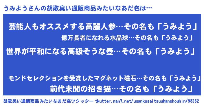 | 意味不明あだ名 | 『うみようフォーエバー』『自称うみよう』 |
