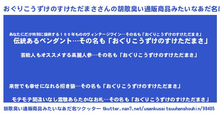 | 欧米人風あだ名 | 『トリンドルおぐりこうずけのすけただまさ』 |