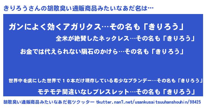 | 欧米人風あだ名 | 『ダニエルきりろう』『マイケルきりろう』 |