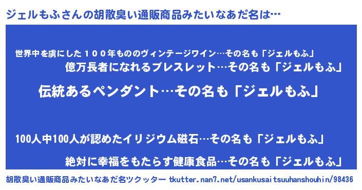 | 欧米人風あだ名 | 『ウサインジェルもふ』 |