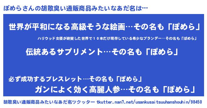 | 意味不明あだ名 | 『とにかく怪しいぽめら』『自称ぽめら』 |