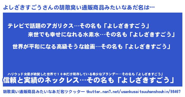 | 意味不明あだ名 | 『よしざきすごうフォーエバー』 |