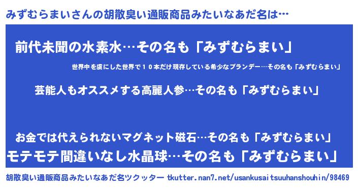 | 意味不明あだ名 | 『自称みずむらまい』 |