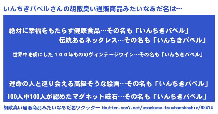 | ヘコむあだ名 | 『いんちきバベル(笑)』『いん太郎』 |
