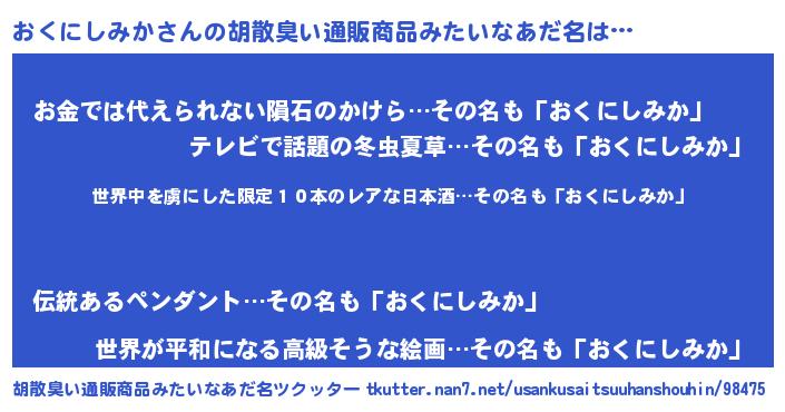 | 意味不明あだ名 | 『たけのこ科おくにしみか属』 |