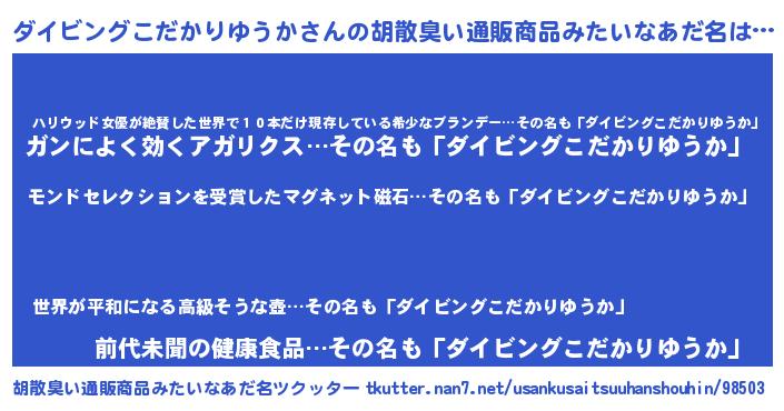 | ヘコむあだ名 | 『ダイビングこだかりゆうか(笑)』『つくし』 |
