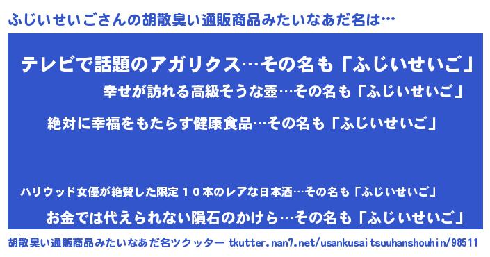 | ヘコむあだ名 | 『ふじいせいご(笑)』『つくし』 |