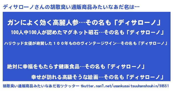 | 男性向けラノベタイトル風あだ名 | 『はたらくディサローノさま!』 |