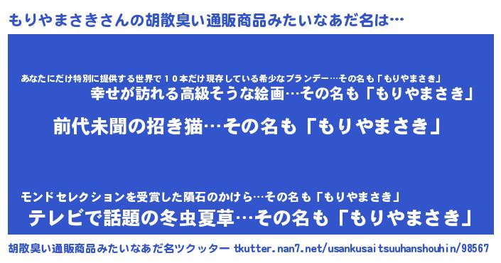 | 意味不明あだ名 | 『永久保存もりやまさき』 |