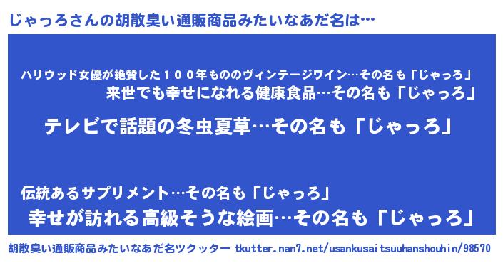 | 女子向けラノベタイトル風あだ名 | 『じゃっろアンティーク』 |