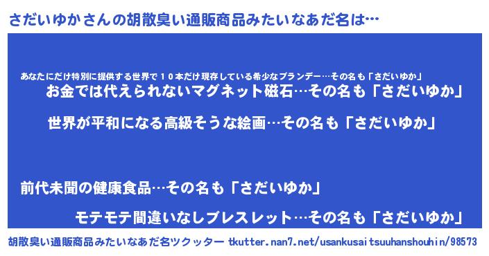 | 肩書あだ名 | 『さだいゆか総理大臣』『さだいゆか教官』 |