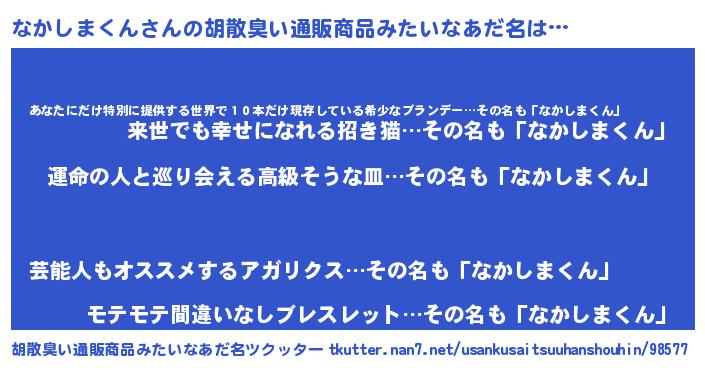 | 意味不明あだ名 | 『なかしまくんフォーエバー』 |