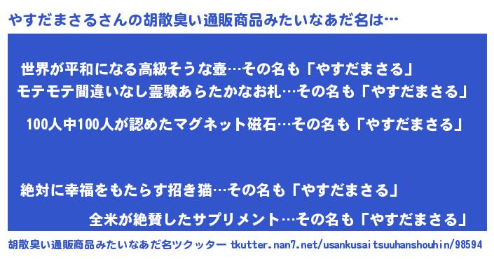 | 肩書あだ名 | 『やすだまさる助教授』 |