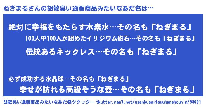 | ヘコむあだ名 | 『ねぎっぺ』『ねぎまる(遠い目)』 |