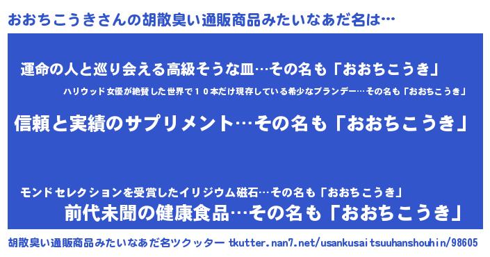 | 男性向けラノベタイトル風あだ名 | 『オオチコウキスレイヤー』 |