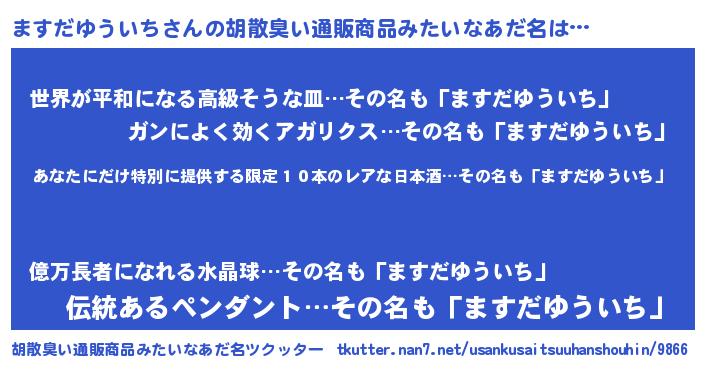 | 伝説のあだ名 | 『最強の忍者ますだゆういち』 |