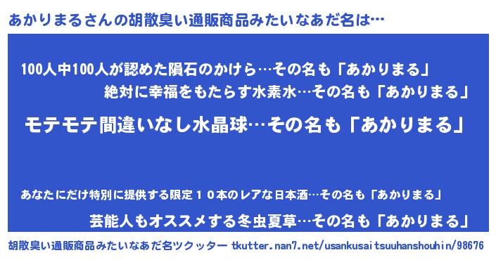 | 恥ずかしいあだ名 | 『プリティーあかりまる』『あかちん』 |